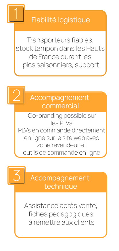 Disponible toute l’année, livraison fiable, disponible au détail, service client réactif (numéro dédié, chat, site web).